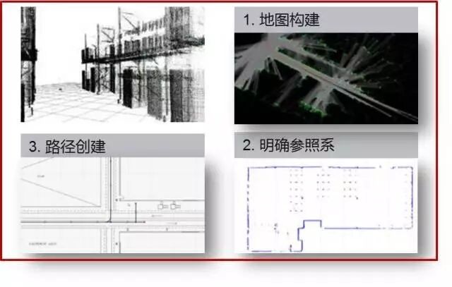 Linde同样也有SLAM(simultaneous localization and mapping)的应用,无需安装任何额外定位标志,通过以下三个步骤实现导航定位。